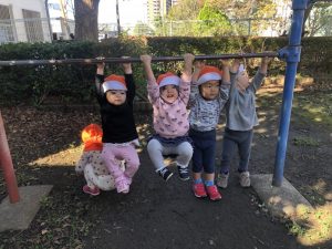 今週から11月に入りましたね?朝は冷え込む日が増え子どもたちも暖かい上着を着て着て元気に登園してきています♪暖かいお布団から出られない!なんて朝も増えそうですが、寒さに負けず元気いっぱい過ごしていきたいですね!