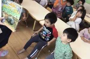 秋らしい今の季節にぴったりの絵本「あなほりくまさん」の読み聞かせの様子をお伝えします?