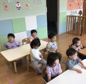 もも組さんやいちご組さんも音楽が流れるとノリノリで手遊びや体操をし、準備万端の様子です?