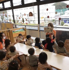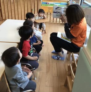 今週の絵本ブログでは「でんしゃすきなのどーれ」の読み聞かせの様子をお伝えします?