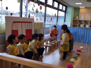 りんご組さんの好きな『おべんとうバス』という絵本を題材に発表をしました‼️