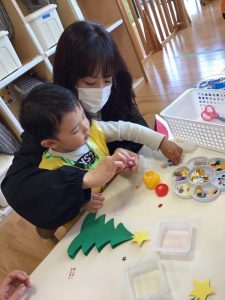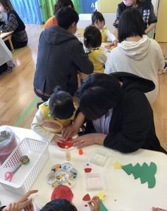 その後のクリスマスの製作ではツリーやサンタさんづくりを親子で楽しみました?