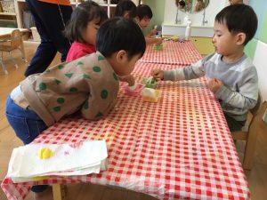 今週はまた急な冷え込みもあったせいか体調を崩す子どもも少なくなかったので、お部屋での活動が多くなりましたが、室内でも元気いっぱいな子どもたちです?大人も同じく体調を崩されている方が多いようですので気をつけてまいりましょう?