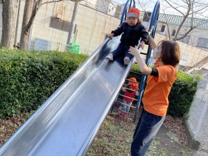 最近ではりんご組さんは滑り台に挑戦!