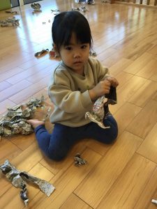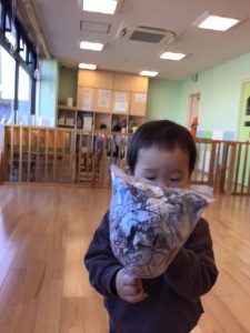 もも組さんも上手に袋に詰め込みます(^o^)何ができるかな。。。?