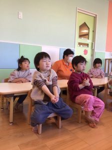 「〇〇食べたよ」「〇〇買ってもらった」などお家の様子を楽しそうにお話ししてくれる子ども達もおり、ご家族の方とあたたかいお正月が過ごせた様で保育士も嬉しくなりました?