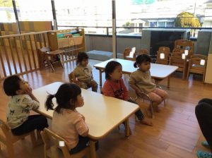 座れないお友達がいると「あいてるよ」と椅子を譲ってあげる姿もあり、
