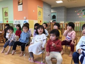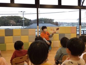 今週は「だれのあしあと」という絵本の読み聞かせの様子をお伝えします?