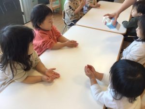 子ども達も慣れた様子で手を出してスタンバイしています!