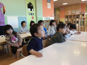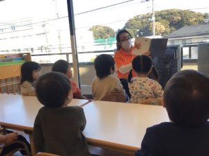 子ども達も正体の分からない何かが気になり、じっと絵本を見つめていました?