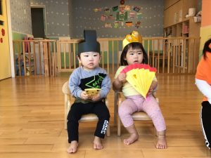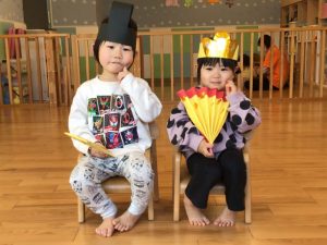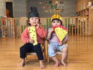 読み聞かせの後はお雛様とお内裏様になりきって写真撮影をしました??