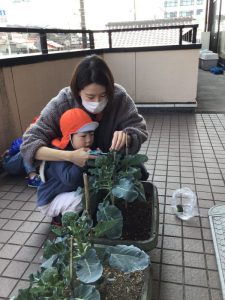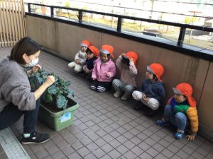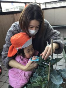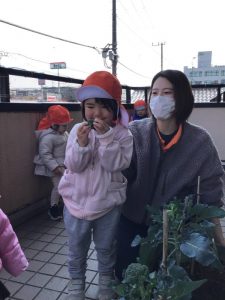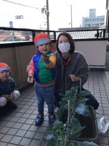「りんご組さんが、ブロッコリー採って来てくれたよ!」というと「え~!どれどれ?」と興味津々でした♪