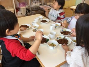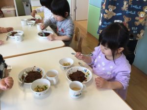 「はやくちょうだい~!!」と楽しみそうに言うと、一番に口に運ぶ子どももいましたよ^^