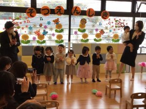 サビでは手でお花の形を作っています?さんはい!と掛け声をかけてくれたお友達もいて、子どもたちの素敵な声が響きました?✨