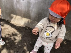 お友達と草を触って大はしゃぎでした(^o^)最近は同じ言葉をや動きをやりあって笑いが起きるいちご組さん。笑