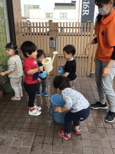 りんご組さん、この日はテラスに出てお花の水やりを楽しみましたよ❀