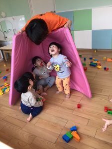 マットで囲んで「いないいないばあっ!」をしたり、