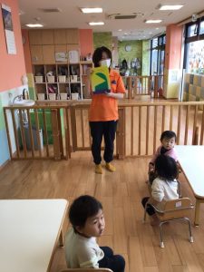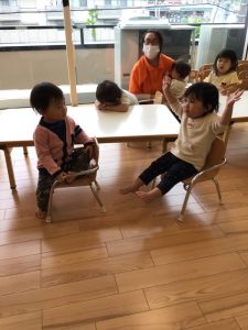 保育士が「もこもこ」「にょきにょき」と絵本を読み進めると、絵本を食い入るように見ている子ども達?