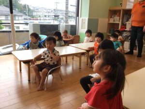 外はすっかり梅雨空で子ども達は窓から外を見ては、「お外行けないね」と少し残念そうな表情をしています?