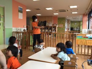 今回は『みかづきのよるに』という本の読み聞かせの様子を紹介します?