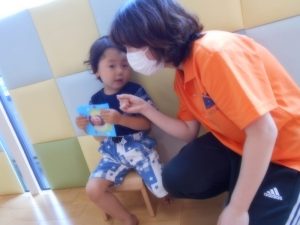 もも組さんのお友達も上手にお座りしてバースデーカードを受け取りましたよ(⋈◍>◡<◍)。✧♡