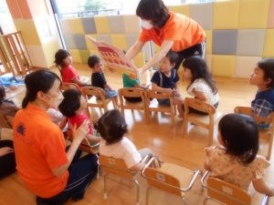 そして、みんなで「ハッピーバースデーのうた」でお祝い!りんご組のお友達は大きな声で歌ってくれました( *´艸`)