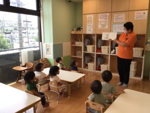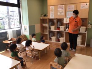 この『おひるね』という絵本は子ども達に馴染みのある動物達が、可愛い絵で表現されており0歳児の子ども達も集中して聞くことができました✨