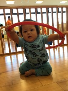 フラフープを持ちあげると得意気の表情になっていました❗️