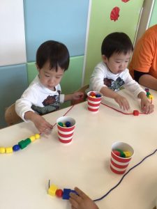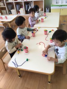 今週はりんご組さんの『ひもとおし』の様子をお伝えします(^^)/