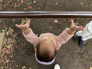 私も届くかな・・・?と鉄棒を見つめるもも組のお友達💕
