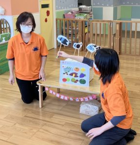 保育士のインタビューで「3さい!」と年齢を答えたり、