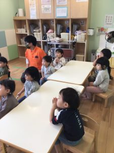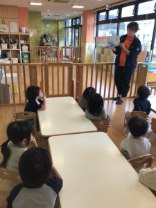 最後のトイレットペーパーの場面はりんご組の子ども達にとって、面白い場面だったらしく小声で「たくさんおしりふけるね〜」と言うとずっと笑っていました🤣