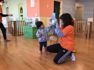 「もっと見せてー」と手を伸ばすいちご組さんのお友だちです☺️