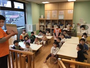 今回の絵本は寒い冬に読みたい『だれのあしあと』という、絵本の読み聞かせの様子を紹介します。