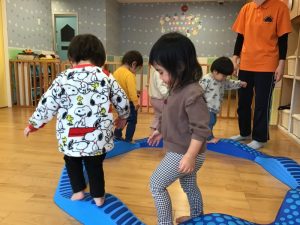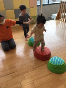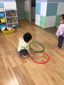 フラフープを並べてぴょんぴょん🐰と飛び越えたり、