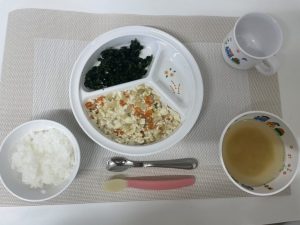 今日は、ほうれん草のお浸しでした。柔らかく、子どもたちには食べやすかったようです。野菜が苦手な子どもでも口に運ぶと、頑張って食べることができました☆