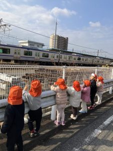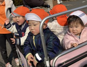 「おさんぽいくー!」「やったー!」とウキウキの子どもたち。