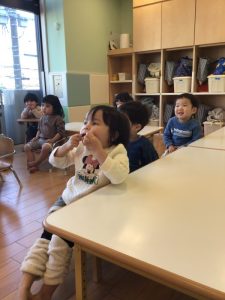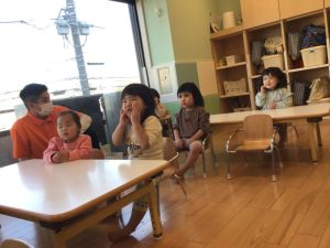 何故か「あっぷっぷー」と保育士とのにらめっこを楽しんでいる子ども達でした😂