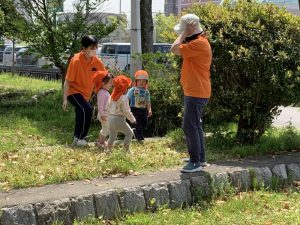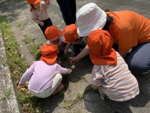 アリさんを見つける子どももおり、みんなで観察をしました。