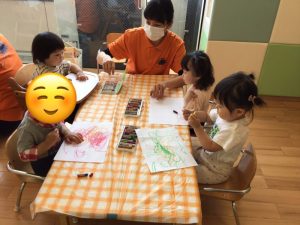 クレヨン🖍️を使って紙いっぱいにお絵描きをして楽しんで遊んでいました。