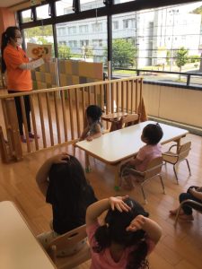 子ども達は「あ!卵だ」と楽しんで見ていました。🍳