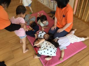 マットにもみんなで仲良く横になって楽しそうに遊んでいました。
