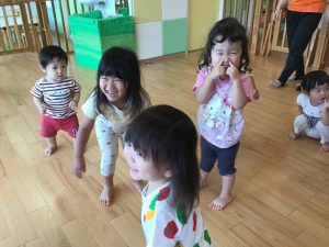 で音楽に合わせて体を動かし楽しみました。