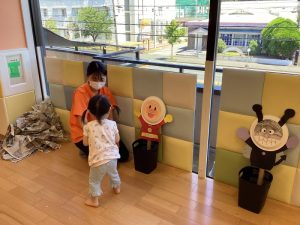 みんなが大好きなアンパンマンとバイキンマンの的当てゲームにも「アンパンマンだ!」と大喜びでした。
