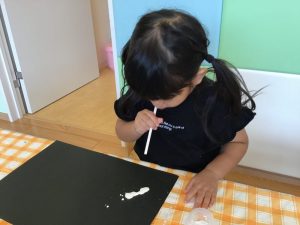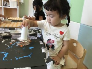 吹き絵をしたり、トイレットペーパーの芯でできた花火のスタンプを押したり🎆