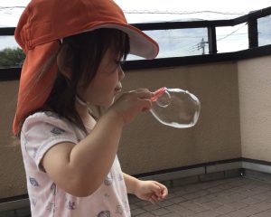 お天気が良かったのでテラスでシャボン玉をして遊びました!