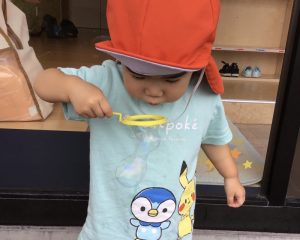 たくさんシャボン玉を飛ばすと「まってー!」と言いながら走って追いかけていました☺️