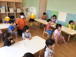 保育士が「とどくかな」と読むと子ども達は「とどくよ」と保育士とのやり取りを楽しみながら見ていました。☺️