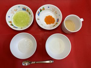 粥 すまし汁 きゅうりのおろし煮 にんじんペースト