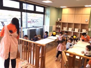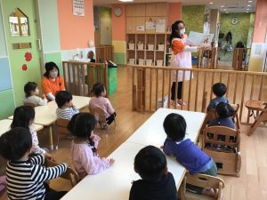 保育士が「静かに静かに」と言うと子ども達も「シー」🤫と口に指を当てて真似していました。